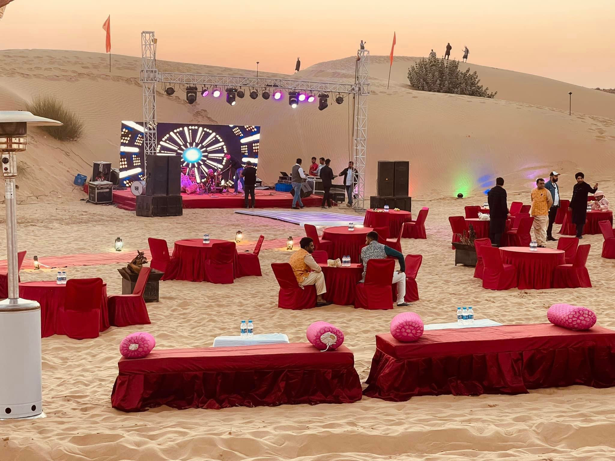 For corporate affairs, our versatile venues are tailored to your event's needs, ensuring a seamless blend of comfort and functionality. From workshops to team-building, Jaisalmer provides the ideal setting. As the sun sets, immerse yourself in a pulsating DJ party, fostering camaraderie and joy.