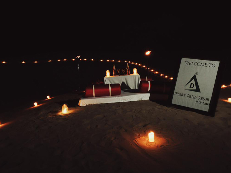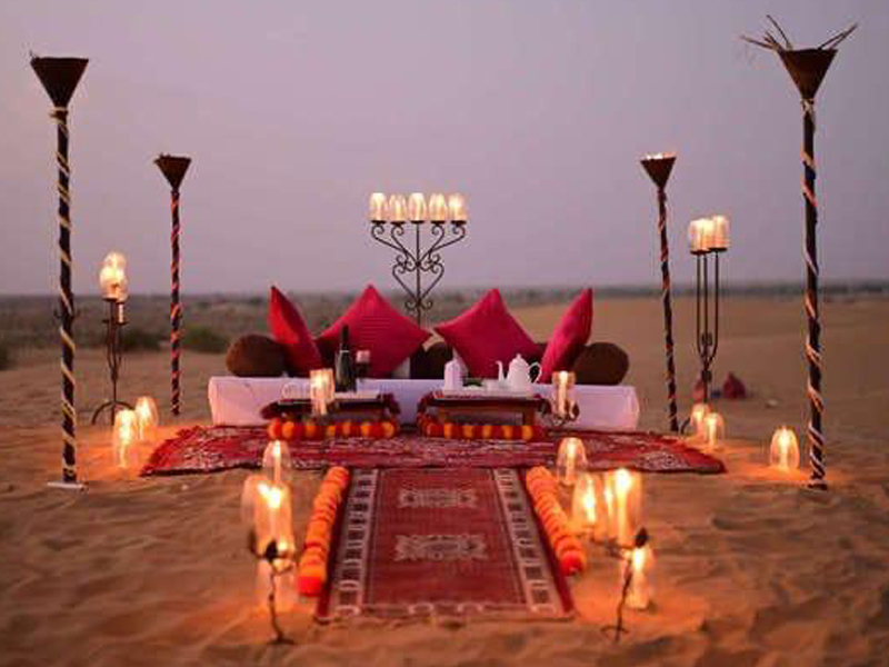 The candlelight dinner on Sam Sand Dunes is not just about the setting; it's a gastronomic journey that indulges the senses. The menu features an array of local and international delicacies, prepared with finesse by skilled chefs. From traditional Rajasthani flavors to global gourmet delights, every dish is crafted to perfection.